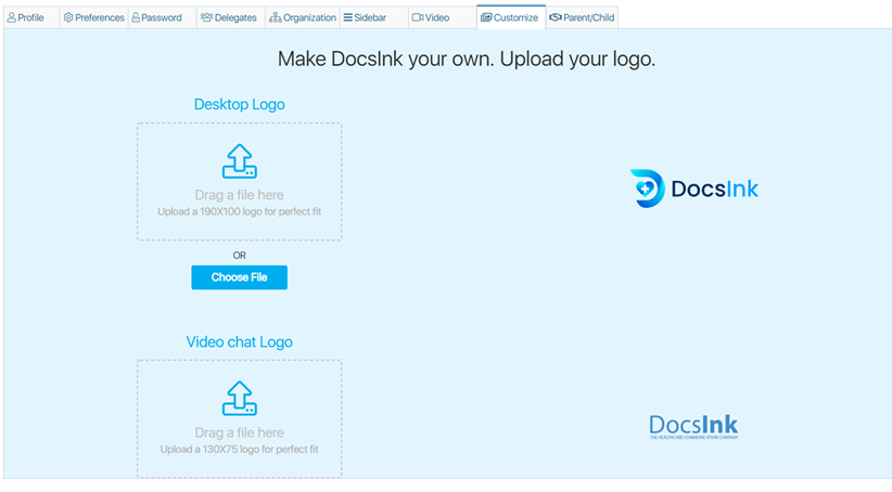 Customize tab: allows you to do just that! Customize your DocsInk view with your own logo